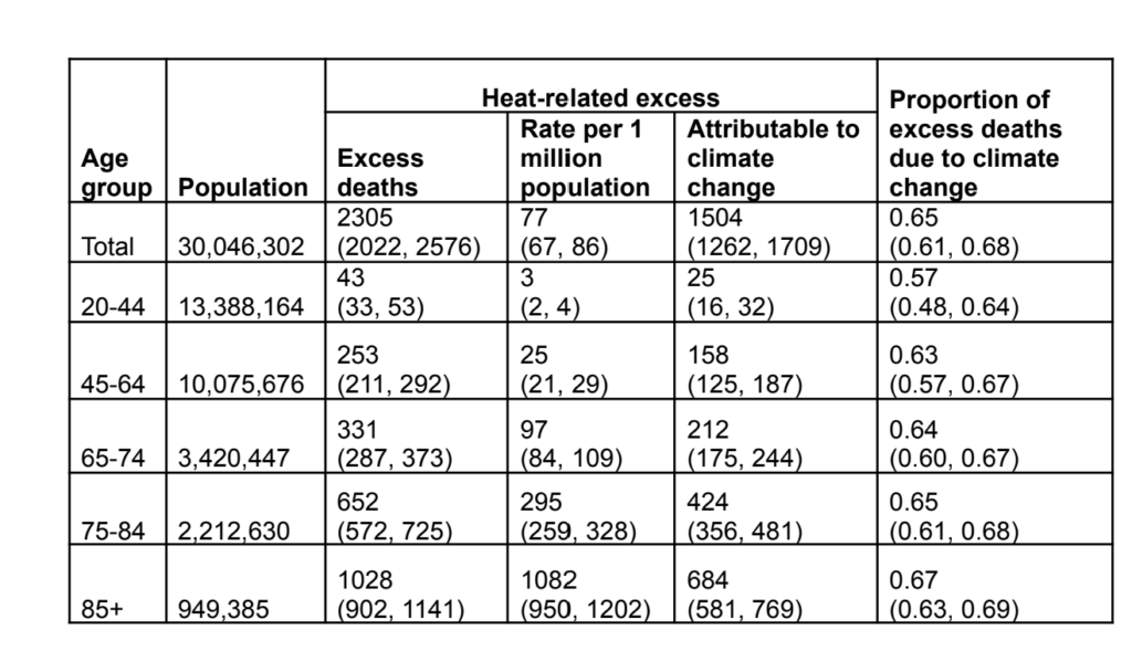 - Sur 2300 morts dus à la chaleur, environ 1500 (soit 65 %) sont attribuables au changement climatique