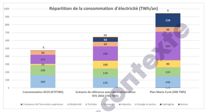 Sans surprise, leur plan prévoit donc de larges surconsommations d’électricité : plus de 940 TWh, contre 475 TWh en 2019, soit le double de consommation… et donc le double de production qu’il faudrait couvrir !