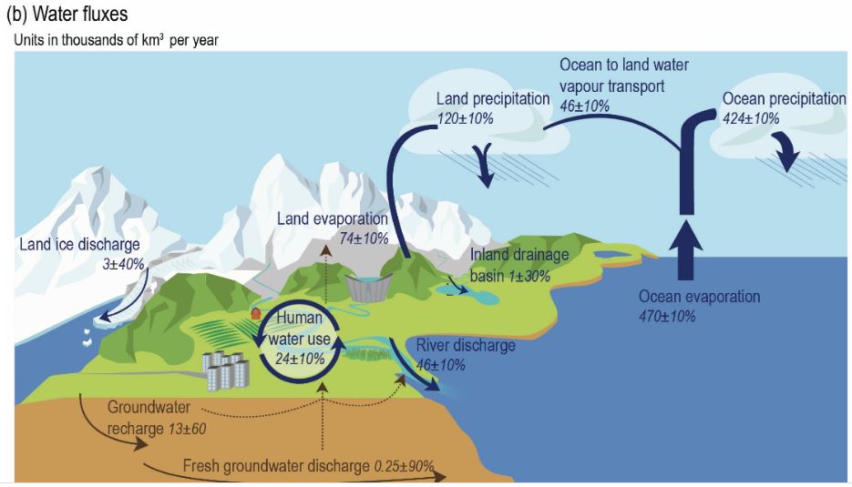 Source : Figure 8.1 du chapitre 8 du GIEC: les flux d’eau sur terre