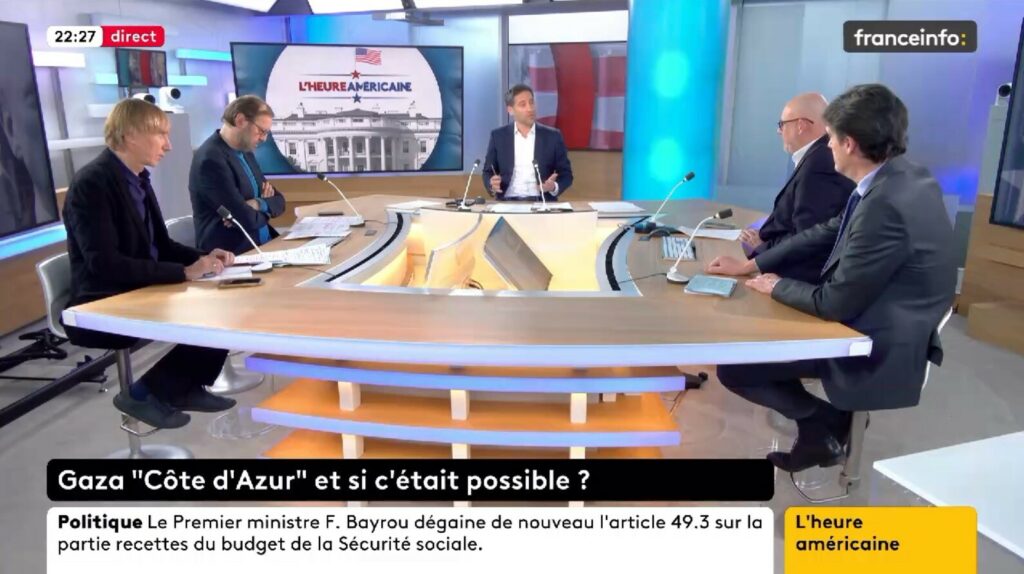 Les médias ont une responsabilité immense dans ce qu’il se passe actuellement. Le choix des sujets, le choix des intervenants… plutôt que de débattre sur la possibilité de faire de Gaza une Riviera à la suite d’une énième sortie dégueulasse de Donald Trump, peut-être qu’il existe d’autres sujets qui eux méritent vraiment d’être discutés ?