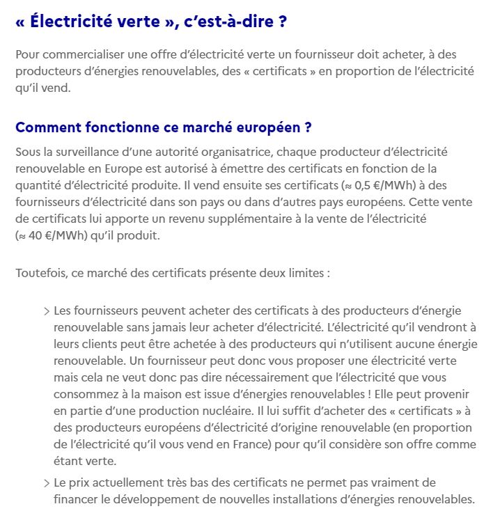 Si vous préférez toutefois une offre “100% verte” pour encourager les énergies renouvelables, comme toujours, il y a vert et vert.