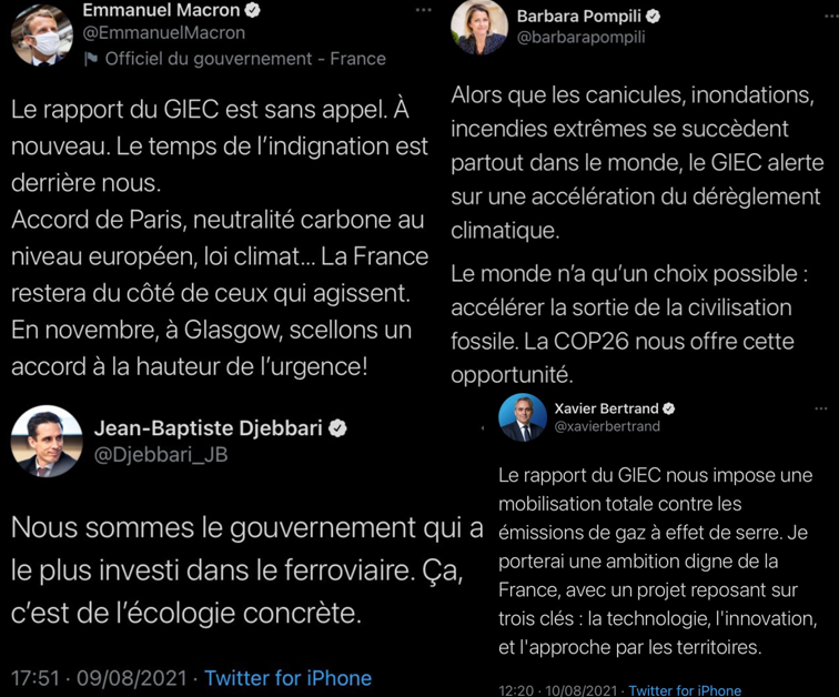 This statement was immediately and unanimously condemned by climate scientists, such as Valérie-Masson Delmotte (Co-Chair of IPCC Group 1) and Jean-Baptiste Sallée (lead author of the latest report).
