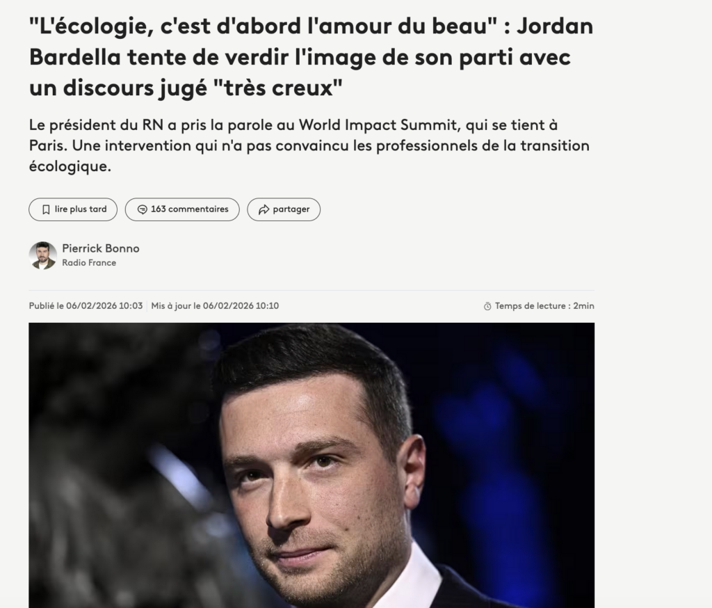On peut étendre ce paradoxe à l’écologie. Les personnalités d’extrême droite qui ont pris récemment le pouvoir ont mis en place des politiques de destruction organisée des politiques et savoirs écologiques. Comment attendre autre chose d’une personnalité comme Sarah Knafo, qui a tout fait pour assister à l’investiture de Donald Trump, le président des Etats-Unis qui a non seulement détruit la politique écologique de son pays mais aussi une partie des capacités mondiales d’analyses et d’actions face au changement climatique ?