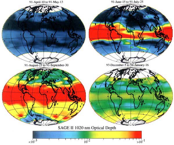 L’éruption du Mont Pinatubo aux Philippines en 1991 est une des plus importantes éruptions du 20ème siècle, et a envoyé près de 20 millions de tonnes de dioxyde de soufre jusqu’à 35 km d’altitude.