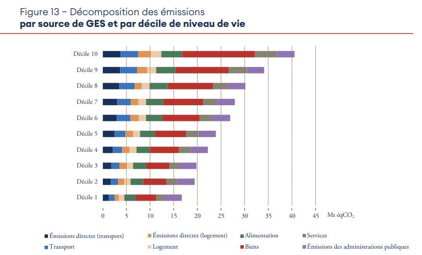 Cela s’explique par le fait qu’une grande partie des revenus part dans l’épargne et non dans la consommation, la méthode retenue ici pour calculer l’empreinte carbone.