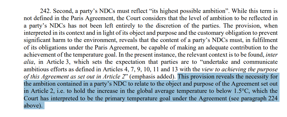 2) La Cour considère qu’il convient, au titre de l’Accord de Paris, de limiter le réchauffement à 1,5°C et non 2°C