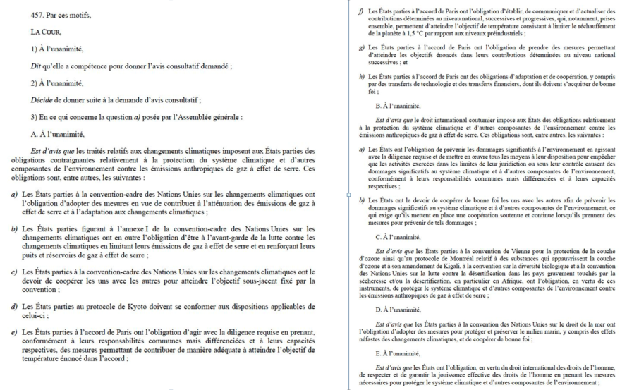 La Cour Internationale de Justice (CIJ) vient de prononcer un avis historique sur les obligations des Etats dans la lutte contre le changement climatique.