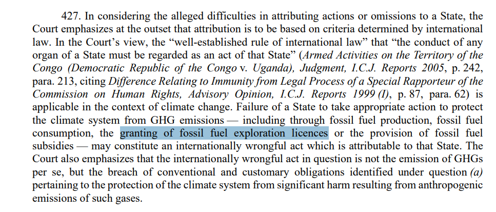 3) Le fait pour un Etat de ne pas prendre les “mesures appropriées pour protéger le système climatique”, par exemple en accordant des “subventions pour les combustibles fossiles” peut constituer un “fait internationalement illicite”