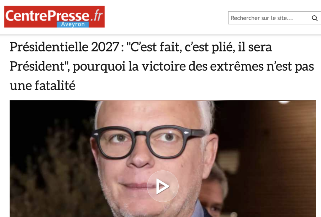 L’institut Hexagone (financé par Pierre-Édouard Stérin, donc) a commandé en mai dernier à l’Ifop un sondage testant quatorze personnalités pour la présidentielle de 2027. Marine Le Pen en était absente, le sondage ne testant que la candidature de Jordan Bardella. Selon une enquête du Monde, une intervention directe du cabinet de Marine Le Pen aurait forcé l’Ifop à réaliser en urgence une « enquête complémentaire » pour la réintégrer.