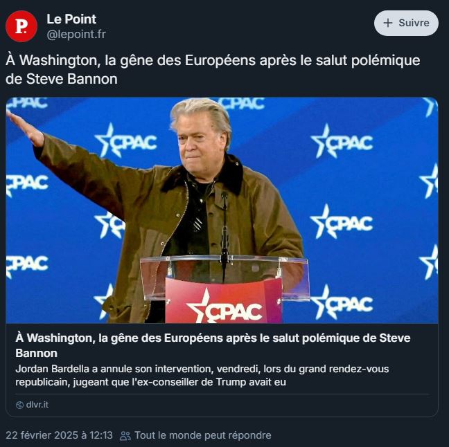 Effectivement, quel dommage de ne pas avoir un milliardaire comme Elon Musk faisant des saluts nazis. Enfin, salut polémique d’après le Point, ce journal dont la rigueur journalistique n’est plus à démontrer.
