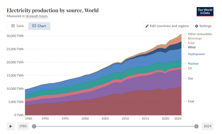 Or, on l’a vu, le processus de production des e-SAF est très énergivore (car très inefficace, beaucoup de pertes d’énergie). Ainsi, il faut compter environ 30 MWh d’électricité pour produire une tonne d’e-SAF. Couvrir l’ensemble des besoins du secteur par du e-fuel nécessiterait donc 18.750 TWh d’énergie. C’est-à-dire quasiment les deux tiers de l’électricité mondiale produite en 2024.