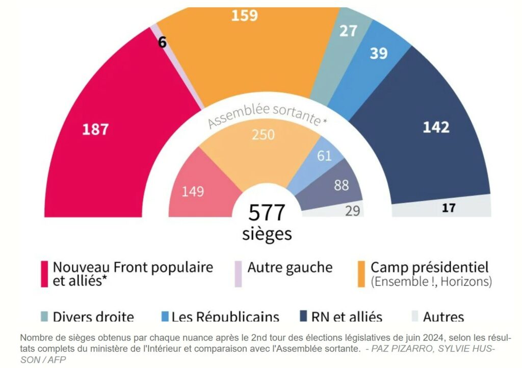 Ce fut certainement une victoire politique, inattendue par tous les sondages un score inespéré quand les médias présentaient un raz de marée de députés Rassemblement National au second tour, avec 200, parfois 300 députés élus. L’occasion aussi de rappeler que se rassembler est la seule solution face au danger qu’est l’extrême-droite. Mais la réalité est un peu plus à nuancer. Non seulement l’extrême-droite a fait un score historique, et en plus de cela, Emmanuel Macron a ignoré les résultats et a choisi François Bayrou comme 1er ministre, qui gouverne depuis main dans la main avec l’extrême-droite pour éviter tout risque de censure.