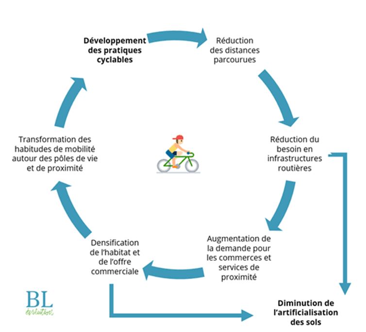 Inversement, un territoire qui propose le vélo comme mode de déplacement à ses habitants va favoriser la création et la pérennisation de commerces et de services de proximité moins dépendants de l’usage de la voiture. Ainsi, le vélo a le pouvoir de réduire les distances à parcourir et d’augmenter son propre potentiel.