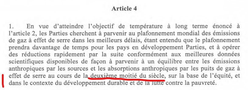 Si la formulation du texte peut paraître ambiguë, c’est normal, et probablement intentionnel afin de faciliter l’obtention d’un accord lors des négociations. Que signifie exactement “bien en dessous de 2°C” ? Limiter à +1.5°C ? Comment est-ce calculé ? Est-ce pour une journée ou une moyenne long terme ?