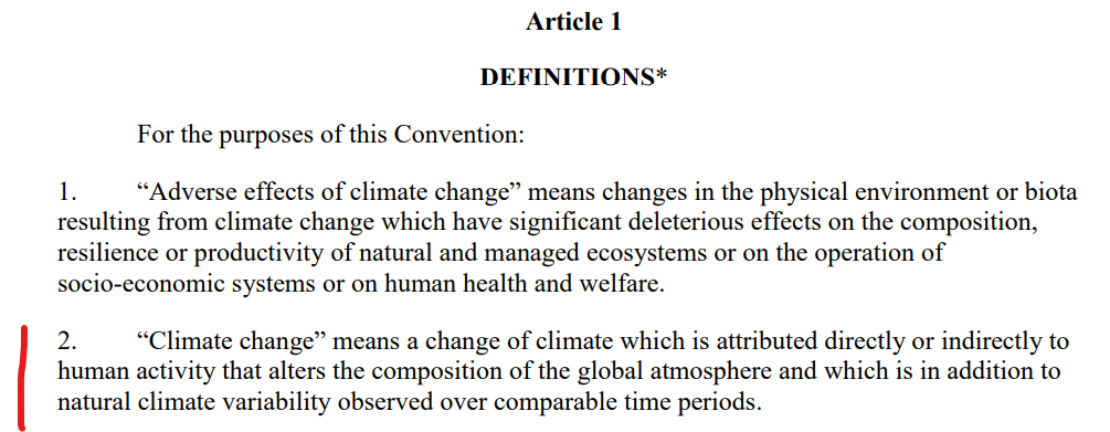 La Convention-cadre des Nations unies sur les changements climatiques (CCNUCC) définit le “changement climatique” comme des changements causés par l’activité humaine, sans tenir compte de la variabilité naturelle.