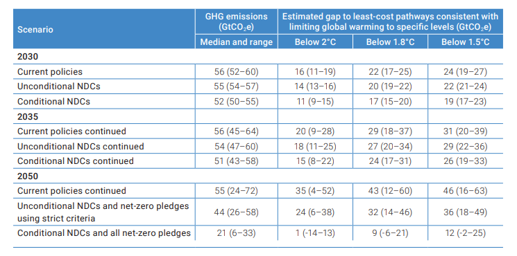 Avec les promesses de baisse d’émissions actuelles (NDC), les Etats prévoient de baisser leurs émissions de 2% d’ici 2030, au lieu de 43%.